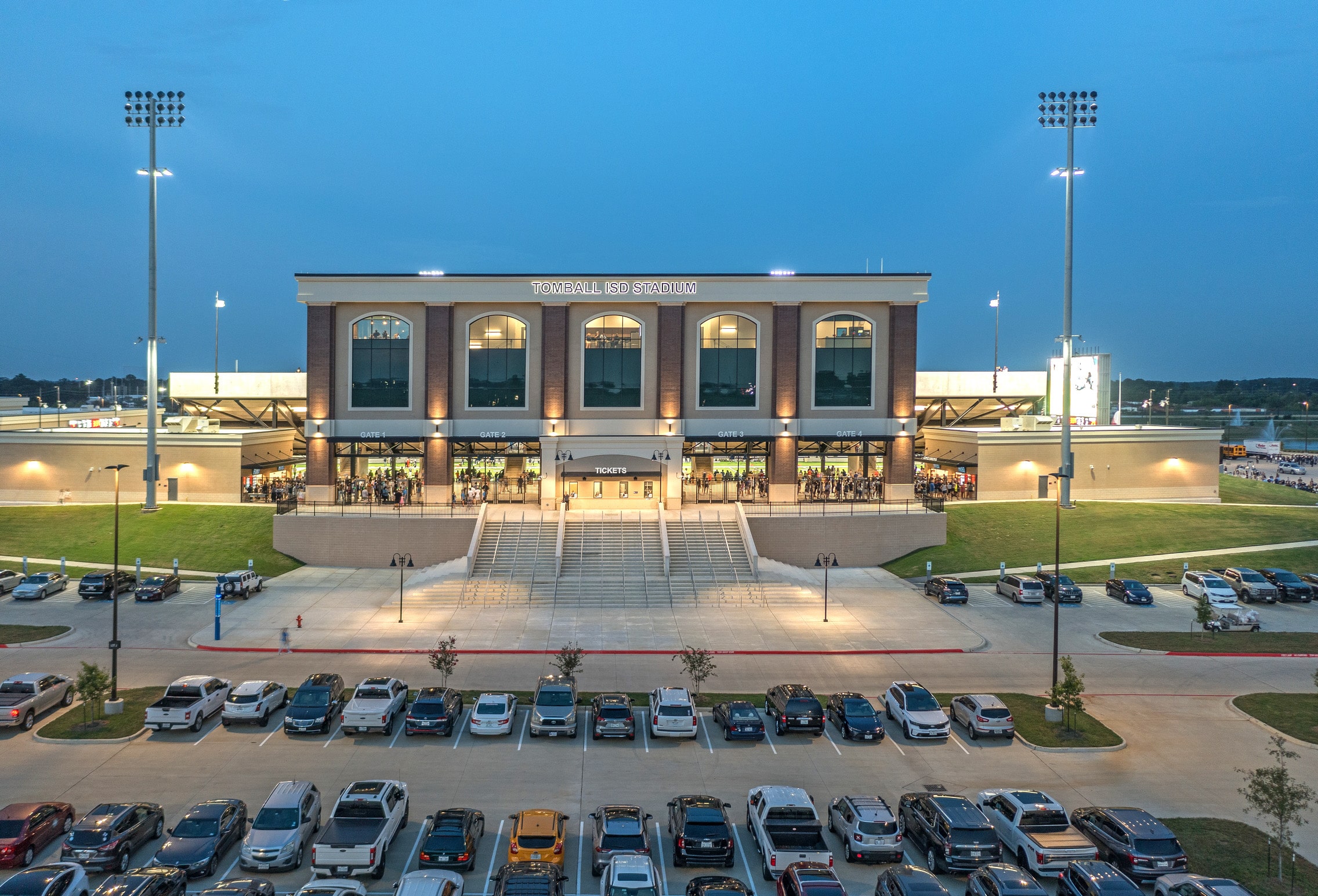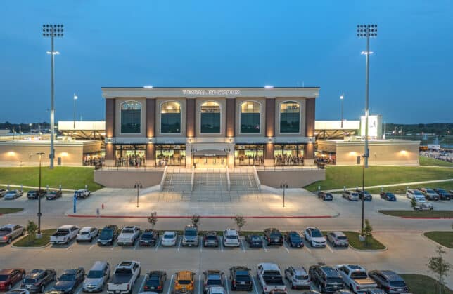 The Tomball Independent School District opened the district’s newest stadium for the 2021-2022 school year. The stadium seats a capacity of 10,000 people and will serve the football, soccer, arts and band programs across the district. It also features a two-level community center, which is one of the largest in the area with a capacity of 600 people. The community center features regular classrooms, a gymnasium, science labs, administration offices, a conference center, sports locker and dressing rooms, a kitchen, and ancillary support areas. Within the stadium is a single level press box that includes coaches’ booths, a dual level film deck, a community room, radio booths, and press and scout’s booth.